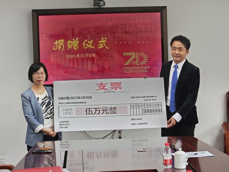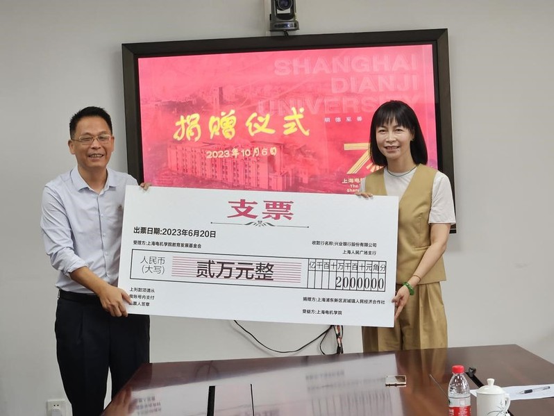 在上海电机学院建校70周年之际,上海浦东新区泥城镇人民经济合作社、江苏诺辉机电工程有限公司分别向学校捐资人民币2万元、5万元,捐赠仪式于10月6日在欧冠联赛官网228会议室举行。泥城镇人民村党总支书记刘春娟、江苏诺辉机电工程有限公司总经理吴宝军、江苏诺辉机电工程有限公司独立董事刘瑜林、上海电机学院欧冠联赛官网直属党支部书记顾建伟、上海电机学院欧冠联赛官网院长范冬姣、上海电机学院欧冠联赛官网教师代表等出席仪式。