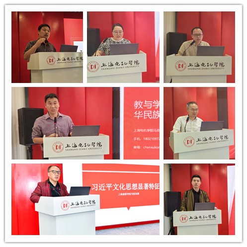会上,上海建桥学院和上海电机学院相关教师分别就习近平文化思想融入思政课教学进行了交流分享。建桥学院苏世伟老师强调教学中,要从历史的角度融入意识形态教育,同时注重与现实生活相结合。电机学院孔晨旭老师从教与学的角度展示“以中国式现代化全面推进中华民族伟大复兴的历史逻辑”的教学设计。建桥学院刘耀煊老师指出在教学中要注重培育新时代大学生的文化自觉,赓续中华文脉,推动中华优秀文化创造性转化。电机学院胡欣诣老师交流了将“两个结合”融入《习近平新时代中国特色社会主义思想概论》课程的教学设计。建桥学院包仕国老师展示了有关习近平国防思想的教学设计。建桥学院蒋成风老师交流了“以保障和改善民生为重点加强社会建设”的教学设计。电机学院方琦老师选用上海市未成年人保护工作站建设为内容切入教学,展示了在习近平新时代中国特色社会主义思想指导下如何以保障和改善民生为重点加强社会建设。
