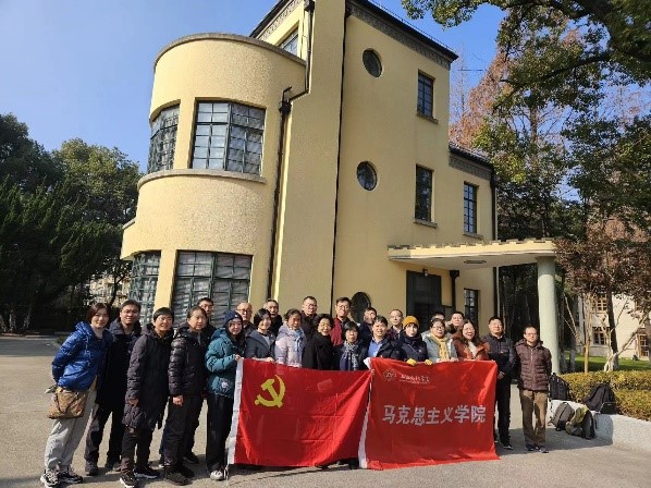 学院教师首先到访位于上海国福路51号的《共产党宣言》展示馆,参观了“宣言中译 信仰之源”主题展,了解了“千秋巨笔 一代宗师”陈望道先生的生平事迹,聆听了“真理的味道是甜的”故事,瞻仰了陈望道先生手持《共产党宣言》、传播马克思主义的雕像,学习了习近平总书记给复旦大学《共产党宣言》展示馆党员志愿服务队全体队员的回信,经历了一次精神的洗礼。
