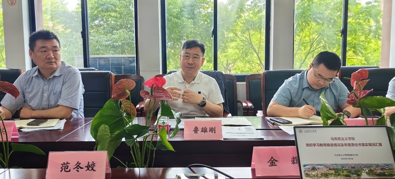 学院直属党支部书记金辉就学院党纪学习教育推进情况及年度责任书落实情况做专题汇报。学院主持工作副院长范冬姣就学院“大思政课”推进、暑期行走的思政课、红色工业文化中心等工作进行汇报。