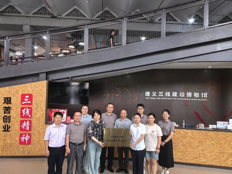 在遵义期间,校社会实践团赴贵州遵义三线建设博物馆进行现场研学。7月28日,校党委副书记、副院长李晓军带领实践团到遵义三线建设博物馆进行现场研学并授牌上海电机学院课外研学基地。遵义三线建设博物馆以具有历史意义和建筑艺术的三线企业——贵州长征电器集团公司长征十二厂原有厂房改造而成,综合展示了遵义三线企业创业发展历程和三线建设成果,是重要的爱国主义、红色工业文化教育基地。