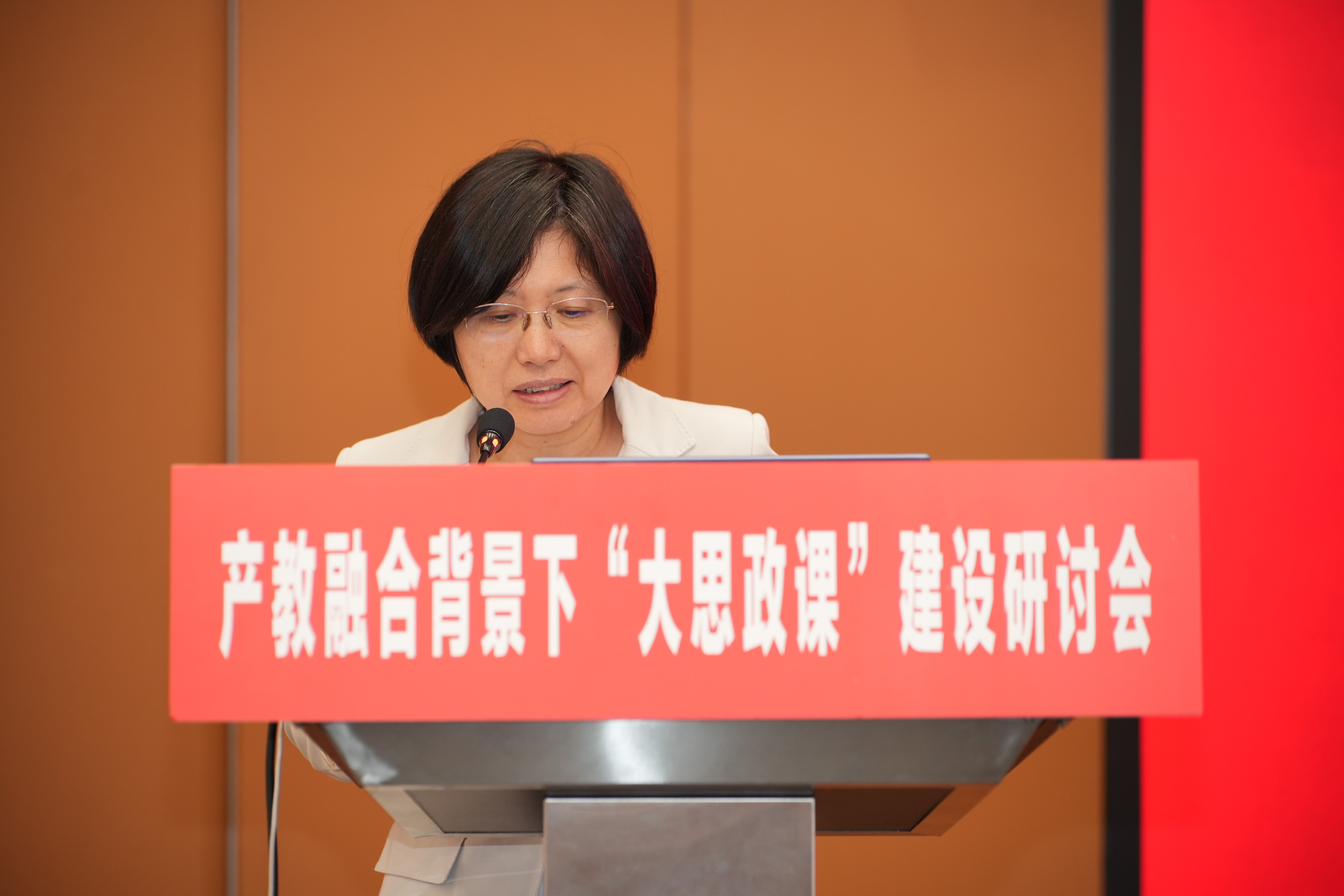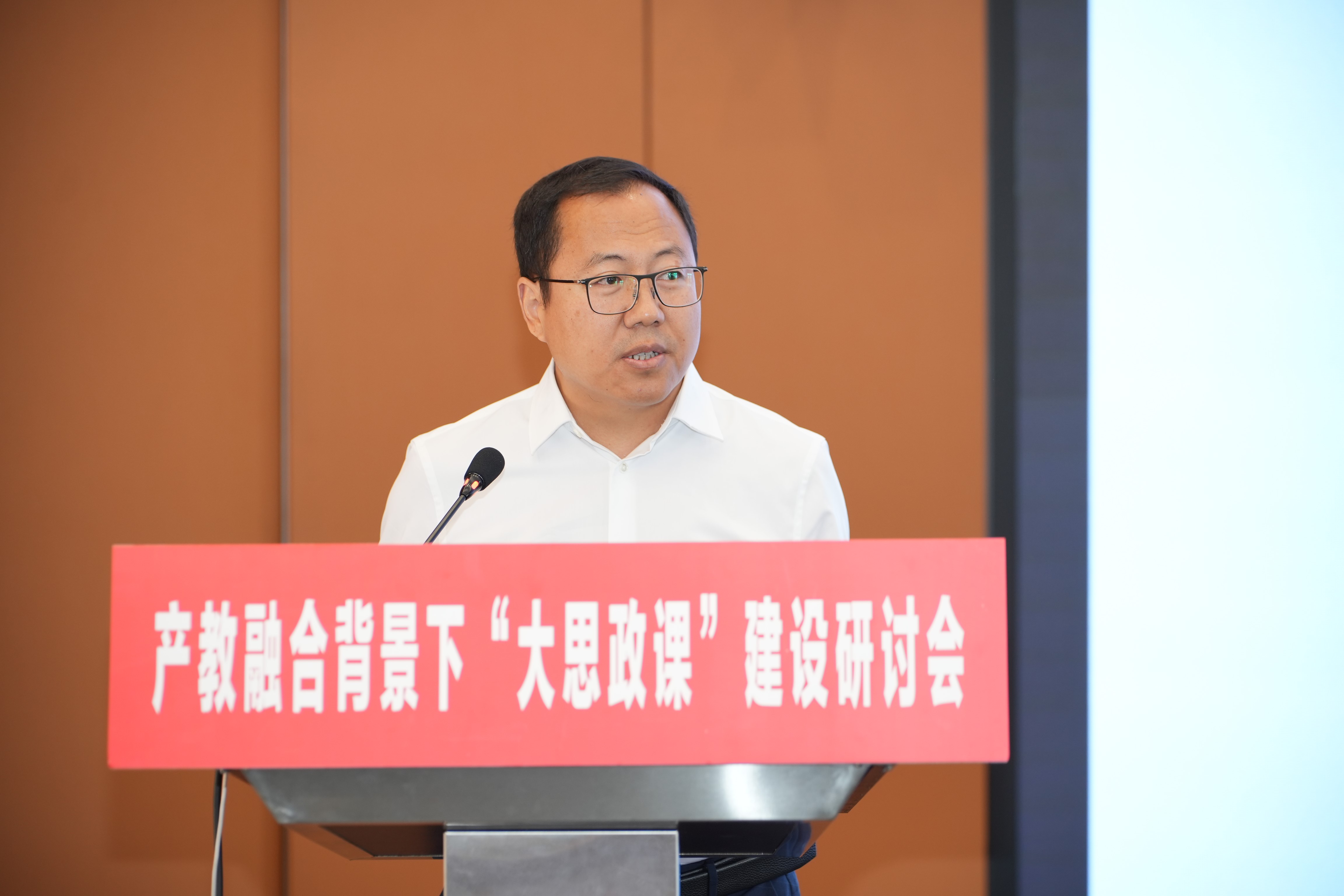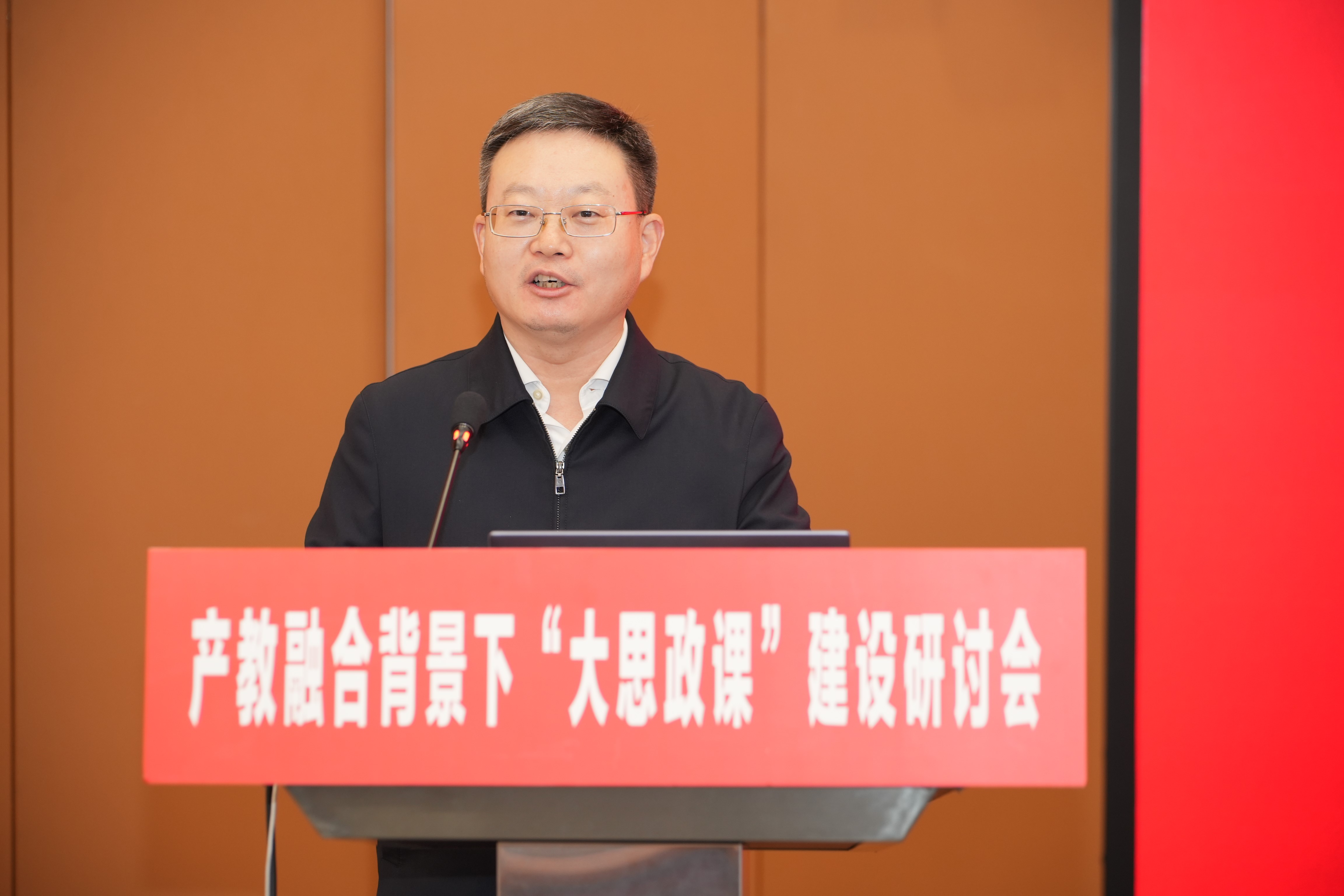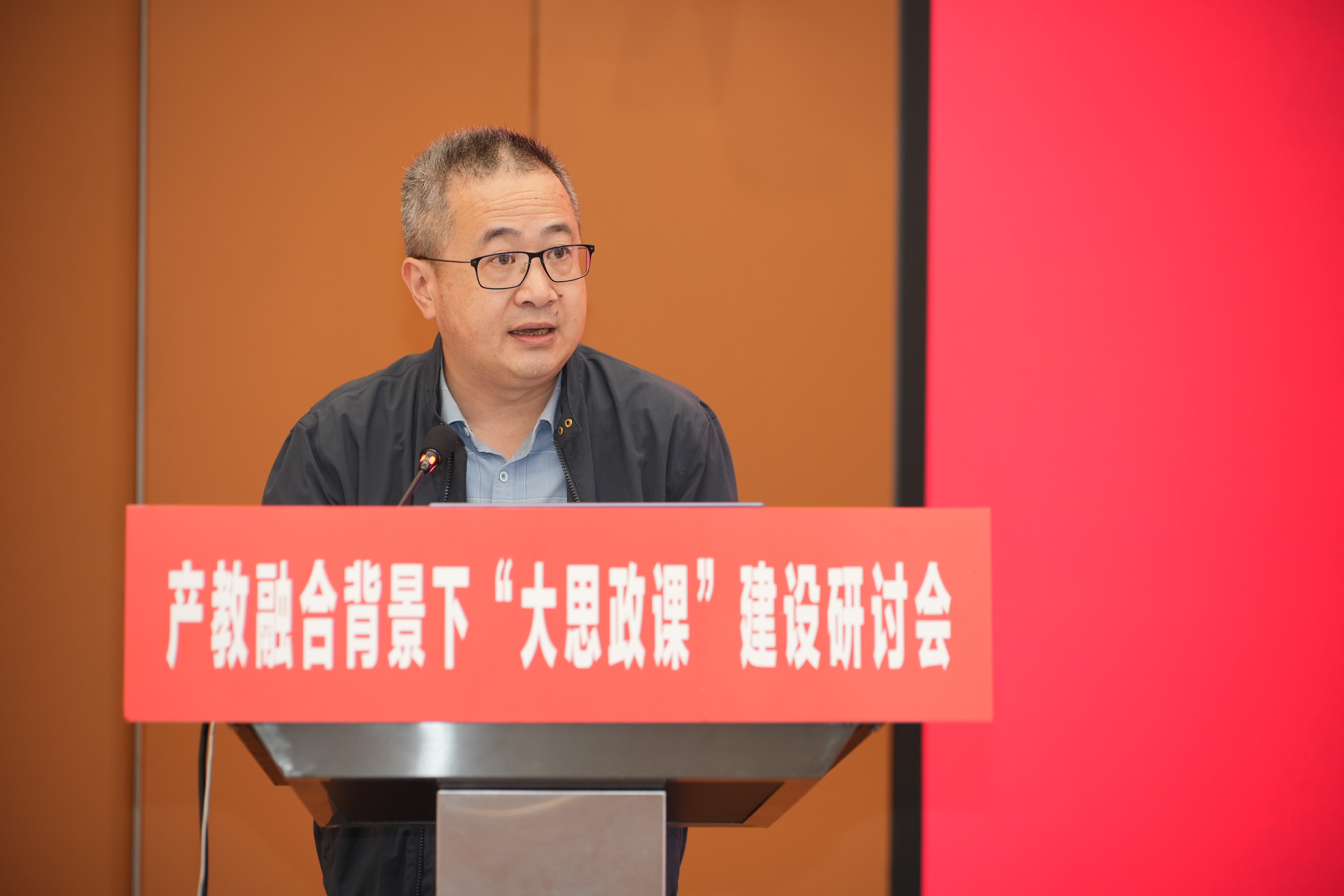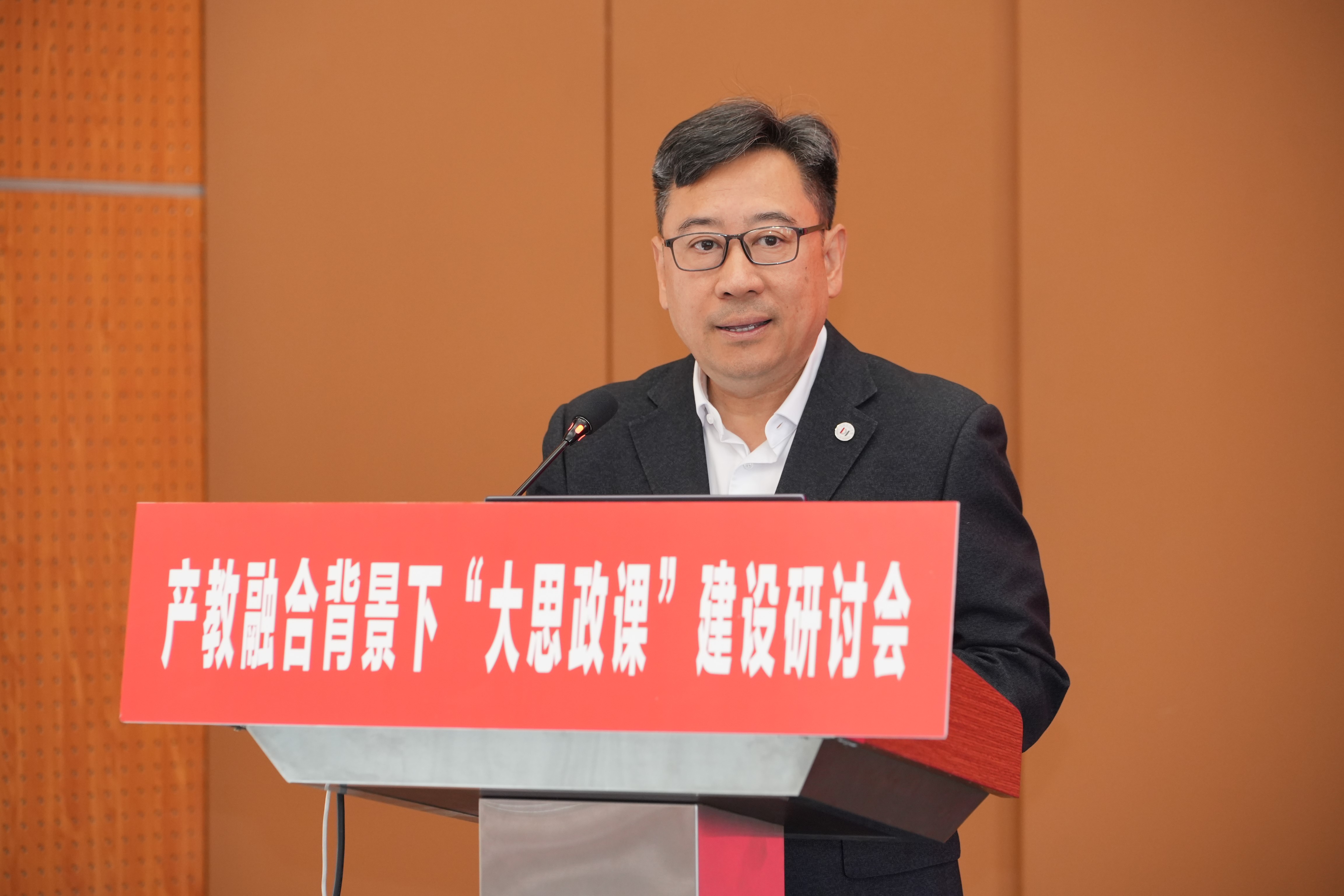 上海市教委副主任刘力在讲话中指出,此次研讨会有助于各高校分享产教融合背景下“大思政课”建设的实践经验,探讨教学改革创新中的重点难点问题,也将进一步推动高校“大思政课”教学的理论研究和校企合作。他强调,当前深入推进的“大思政课”建设是教育强国建设,培养担当民族复兴重任时代新人的必然要求和题中之意。希望学校以此次研讨会为契机,重点做好三方面的探索,第一,讲好新时代伟大变革、引领学生投身服务国之大者,第二,深化校企协同育人、拓展“大思政课”社会育人资源,第三,壮大校外育人队伍、建设“大思政课”兼职教师库。